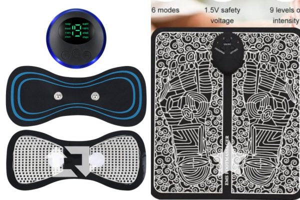Experience ultimate relaxation with the Pack of 2 EMS Massagers, combining a portable butterfly neck massager and a foot massager pad for full-body relief.